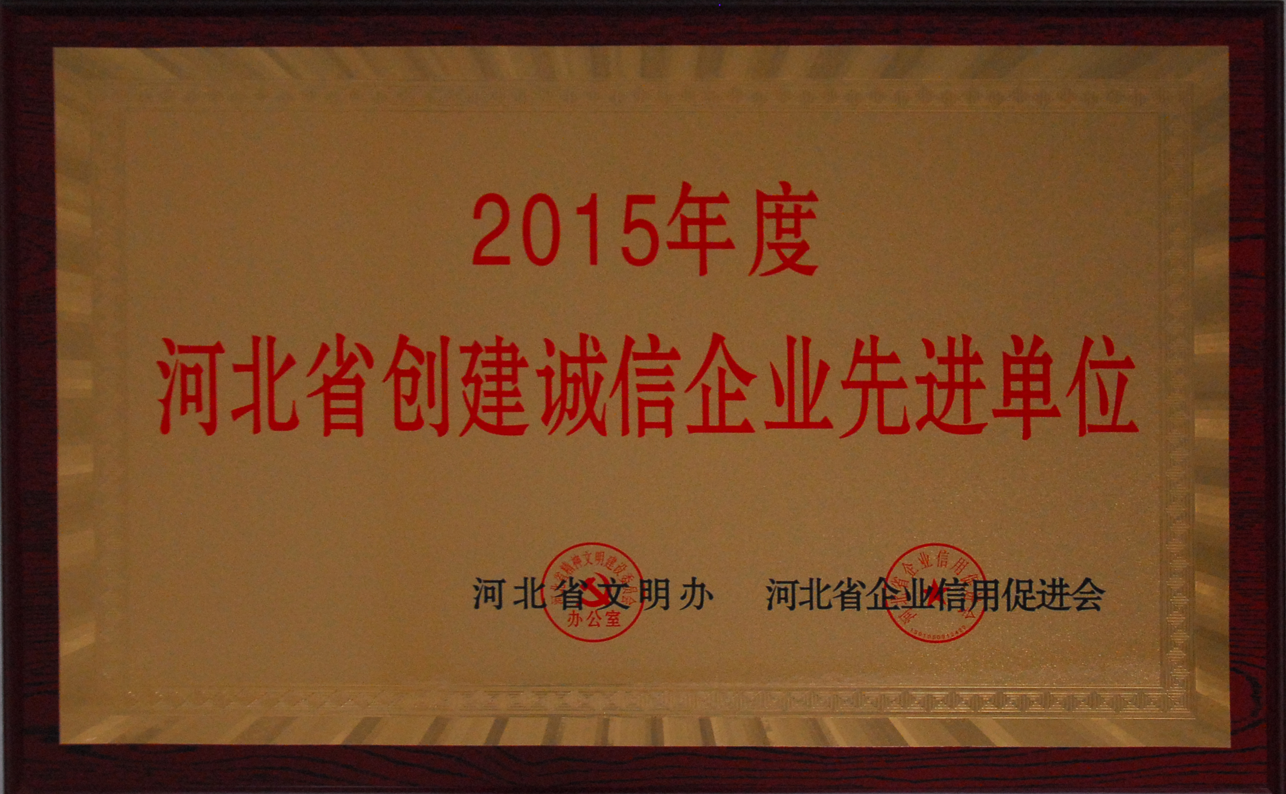“河北省创建诚信企业先进单位”荣誉奖牌
